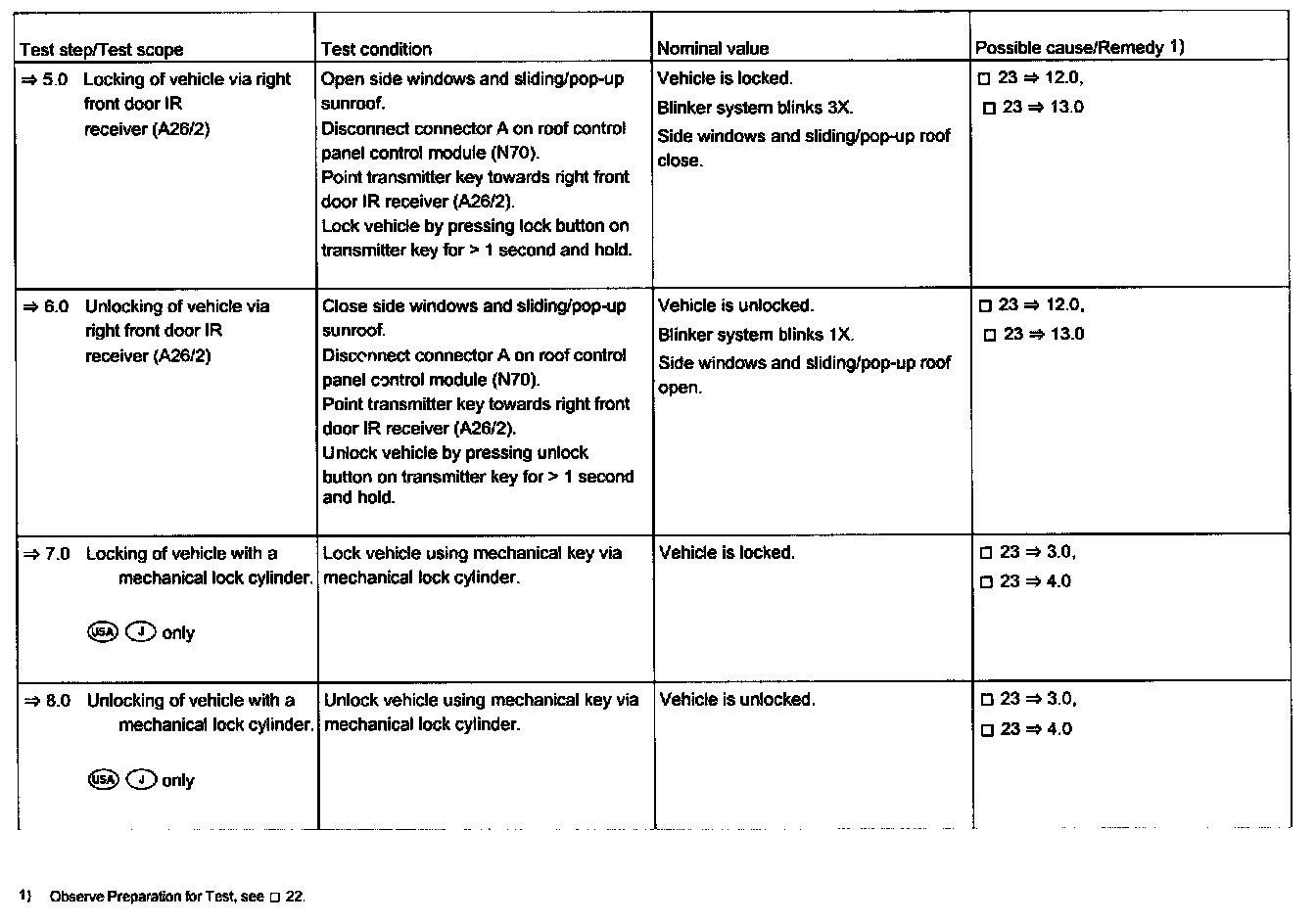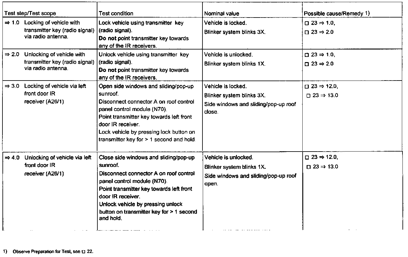 - Check operation of central locking,