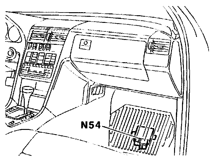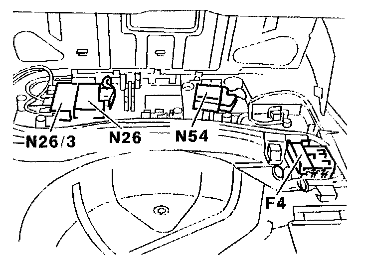 The control module is located on the foot panel in the front passenger's footwell. The 12-pin electrical connection is provided with an installation and removal device. To remove, press the stop notch and fold the clip over. The 2-pin electrical connection is secured with a locking device. To remove, press the stop notch and push the locking device to one side.