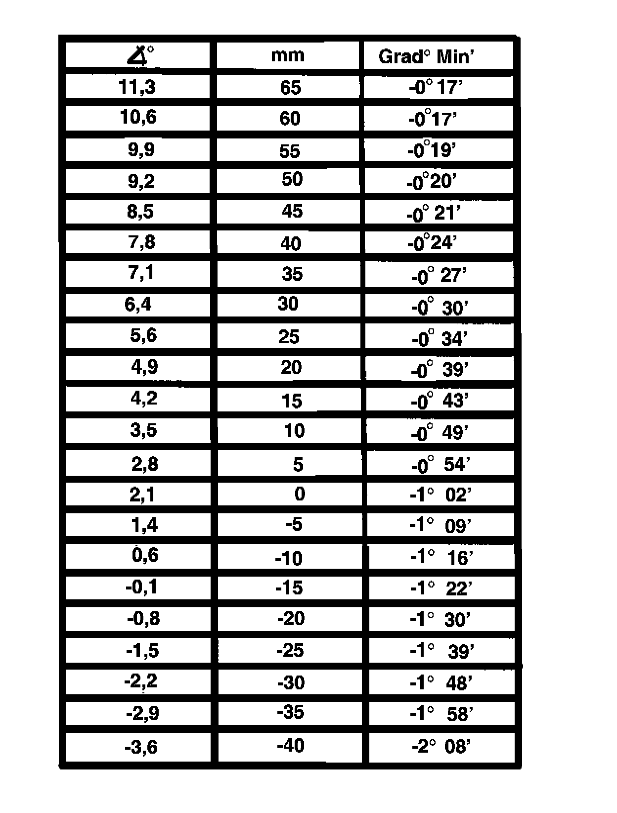 0 mm -1°30'±30'