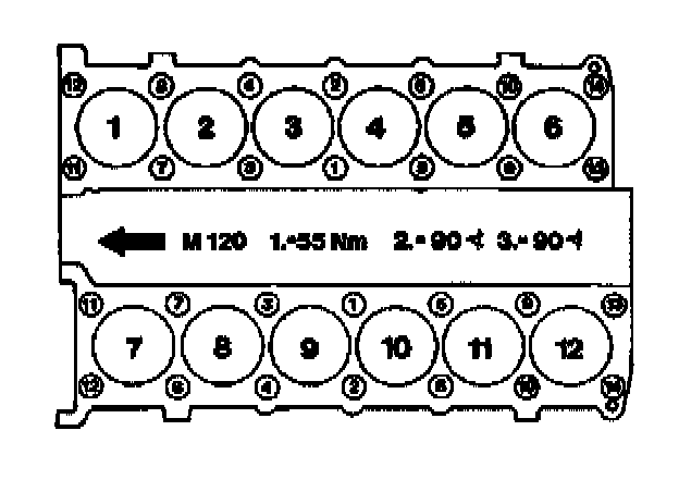 Tighten cylinder head bolts in stages in the order of the tightening diagram.