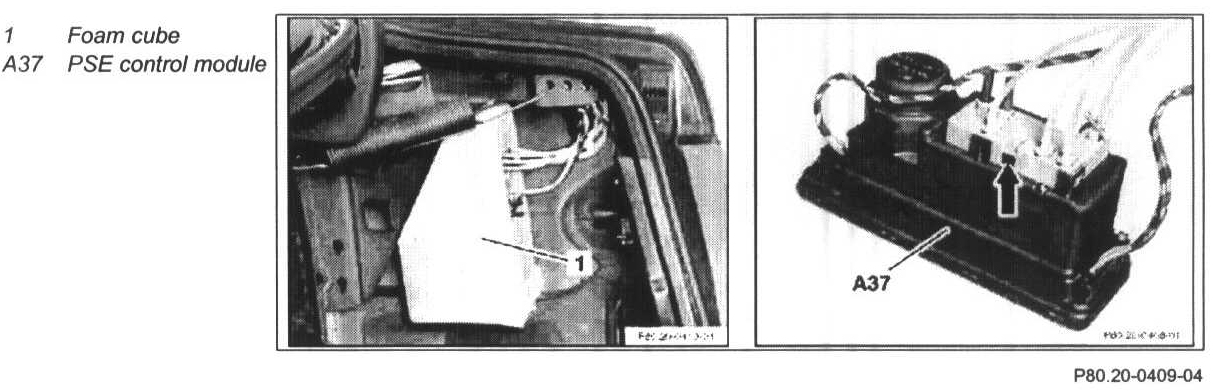 3 Remove PSE control module (A37) from foam cube (1)
