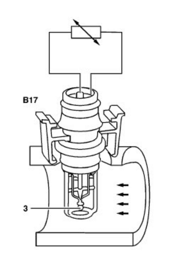 The NTC resistor integrated in the intake air temperature sensor, alters its electrical resistance in line with the intake air temperature.