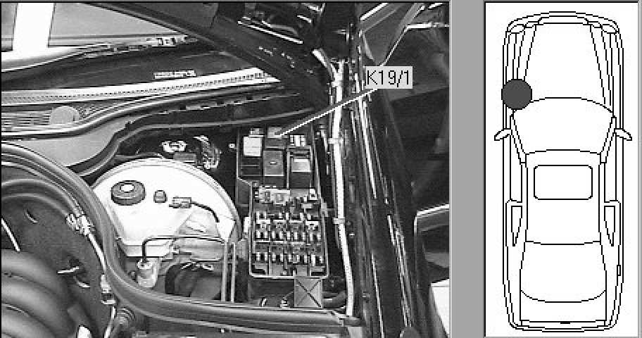 Left component compartment (CDN), in fuse and relay box.