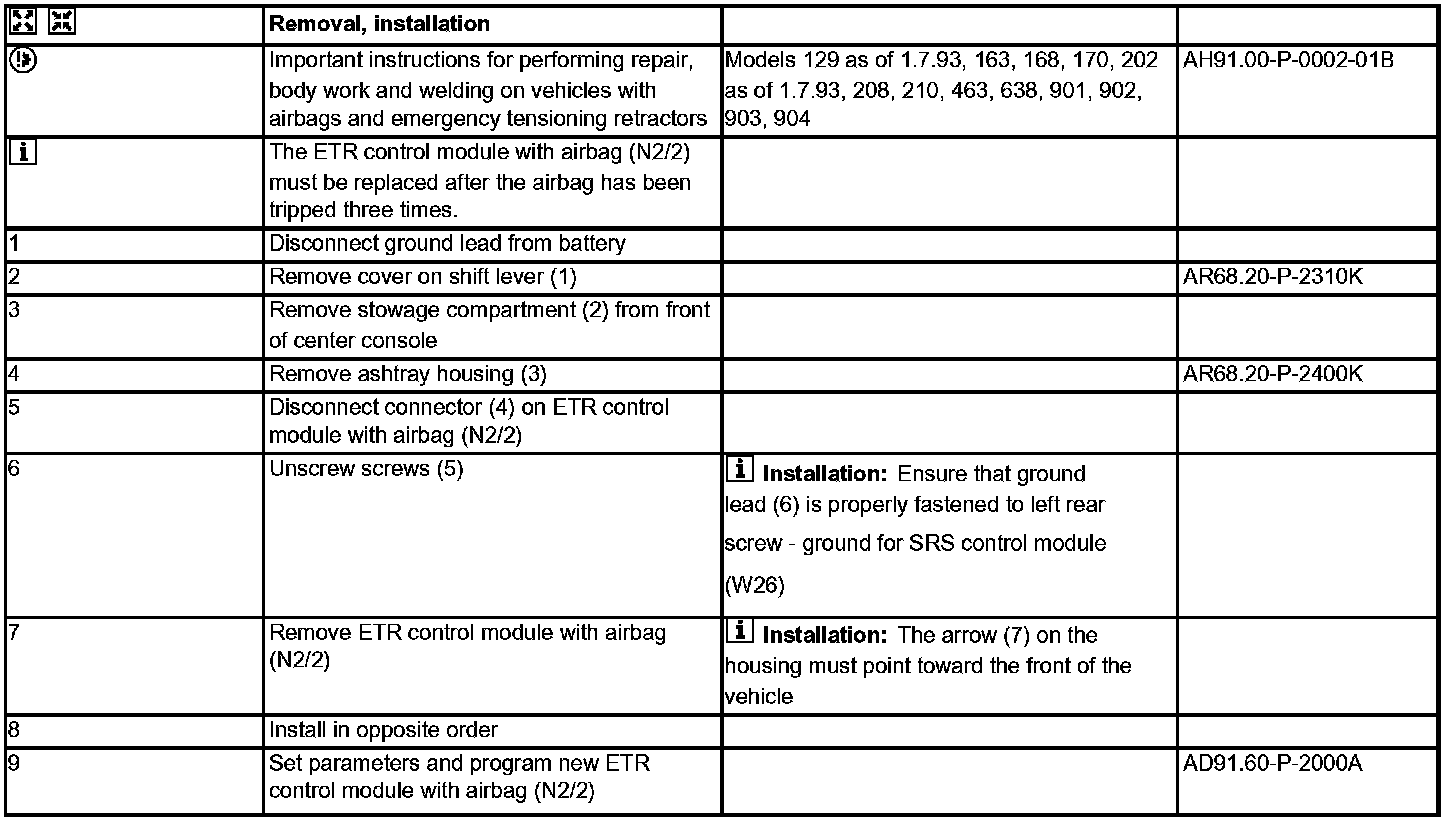 AR91.60-P-0622K Removing And Installing Airbag/Emergency Tensioning Retractor Control Module