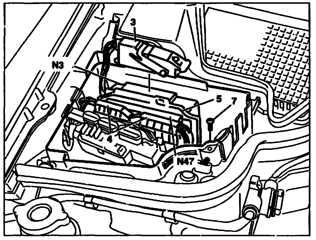 NOTE: The CFI control module (N3) and traction system control module (N47) are mounted on one bracket (5) and must always be removed together.