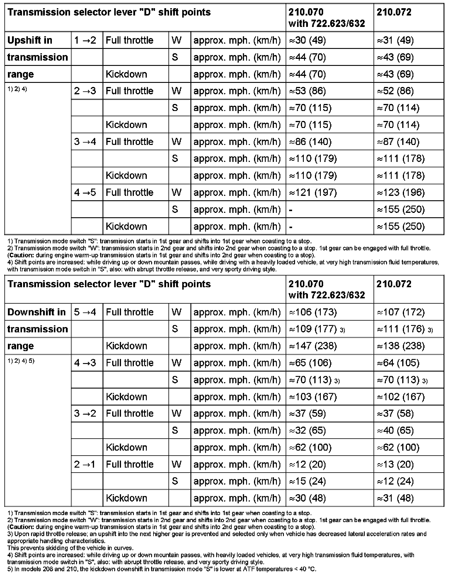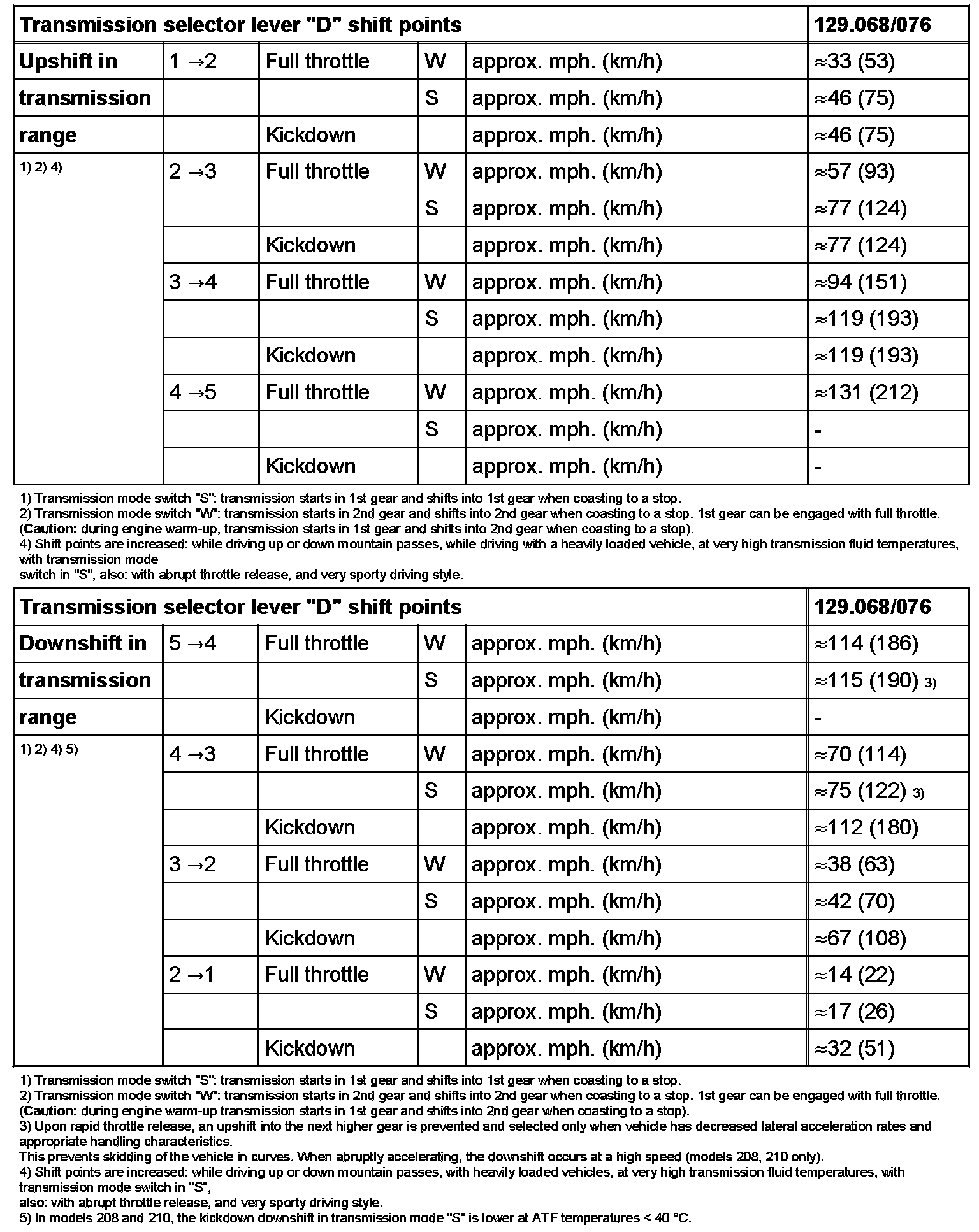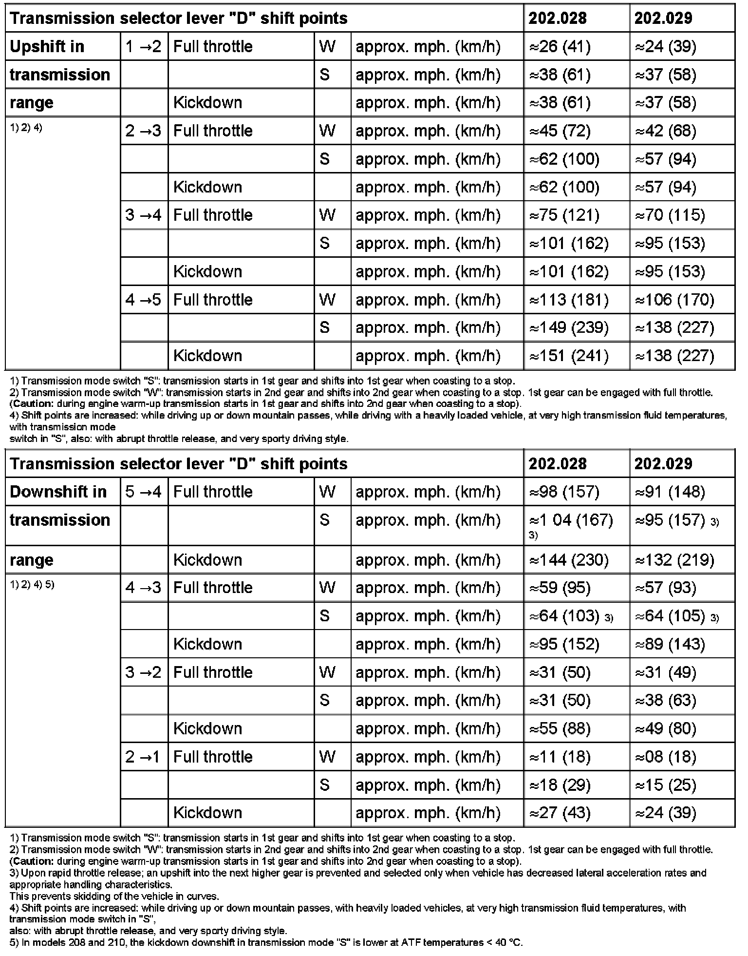Note: Hints regarding "D" shift points for passenger vehicles follows: