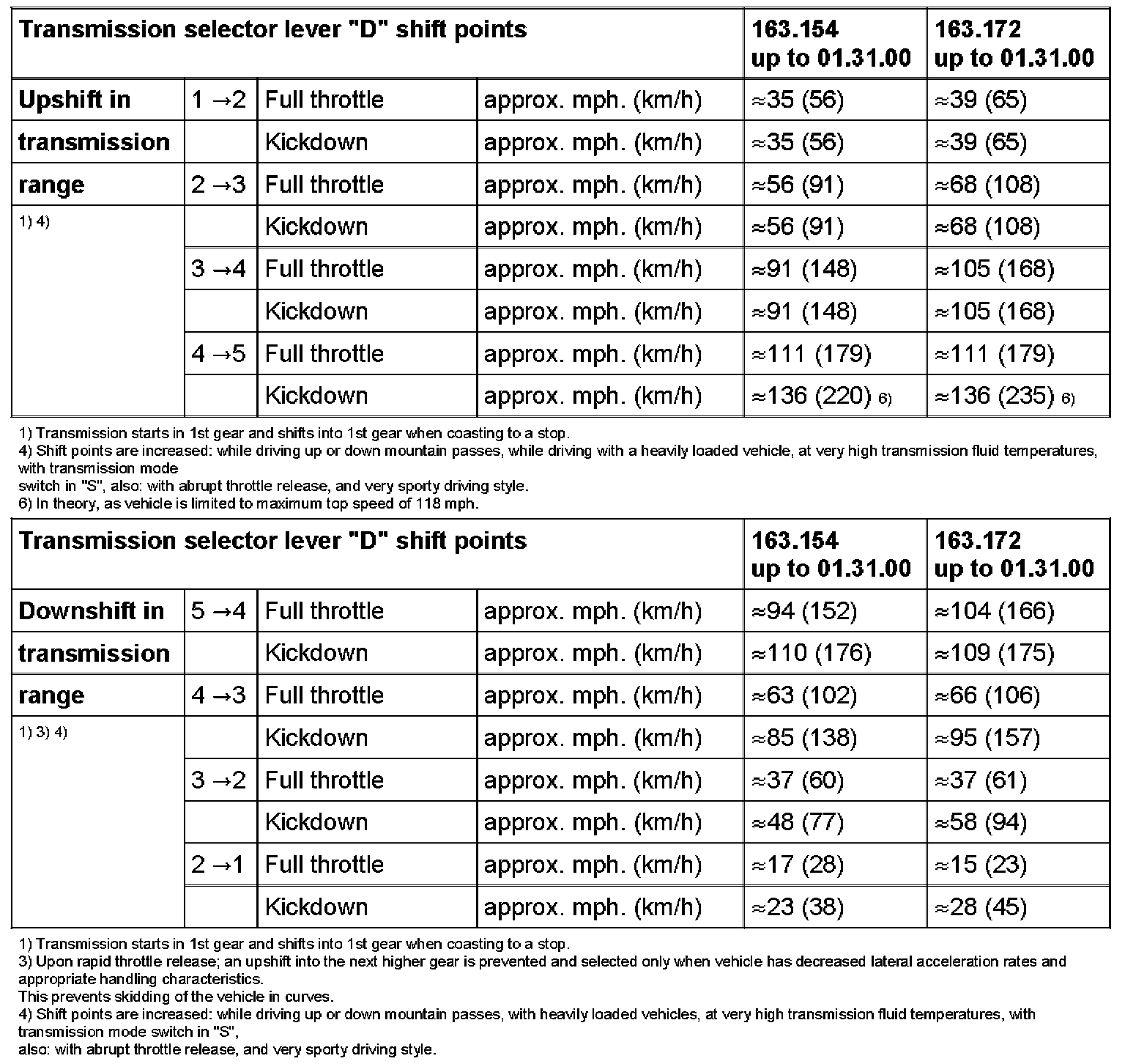 Note: Hints regarding "D" shift points for Model 163 follow: