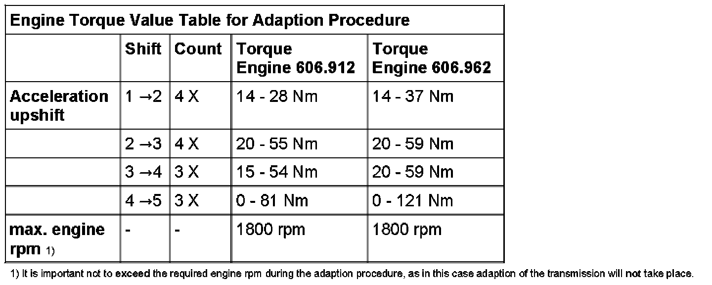 It is important not to exceed the specified engine RPM during the adaption procedure, as in this case, adaption of the transmission will not take place.
