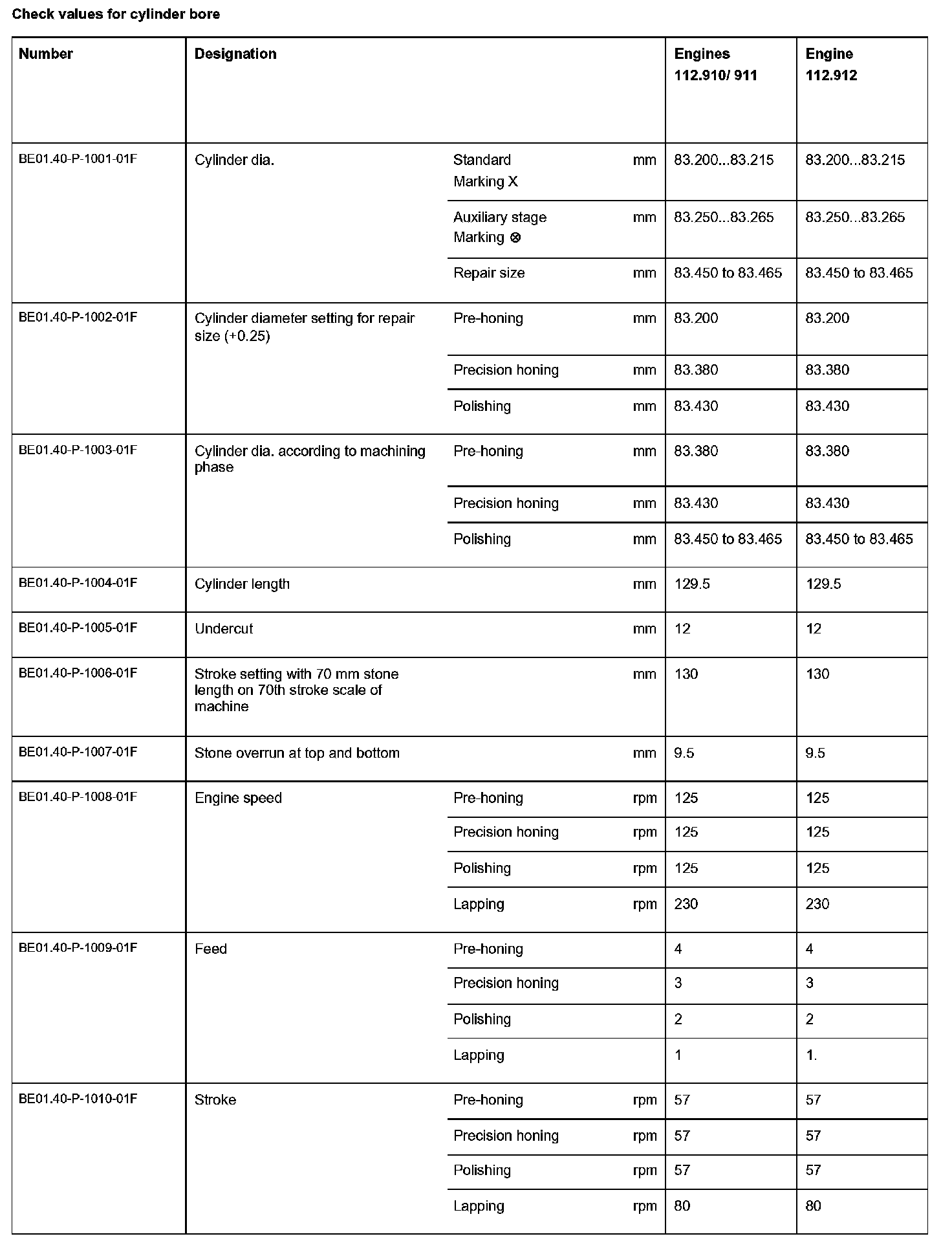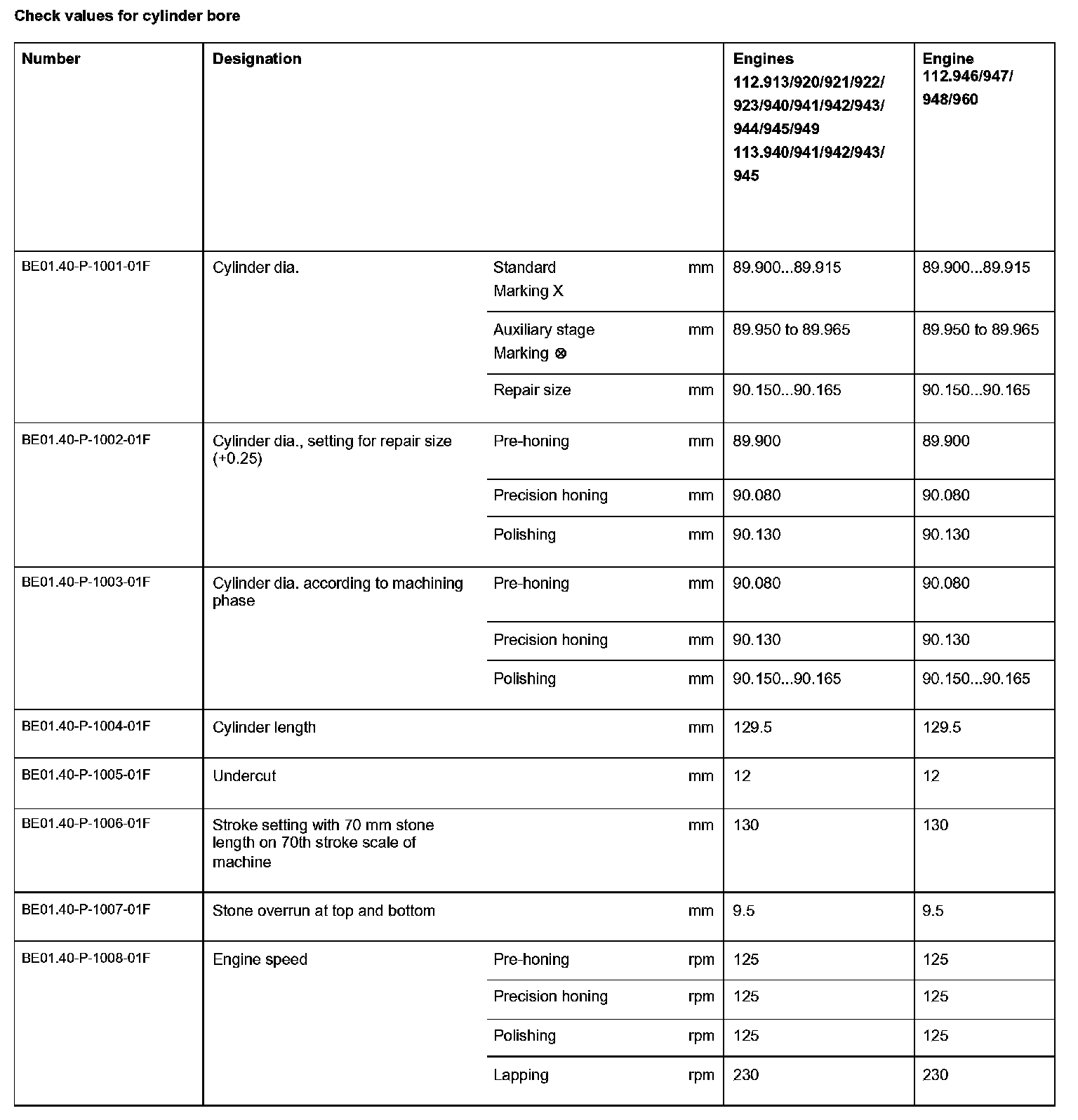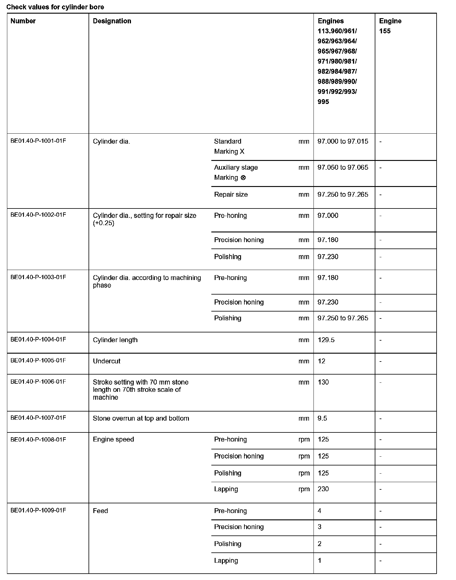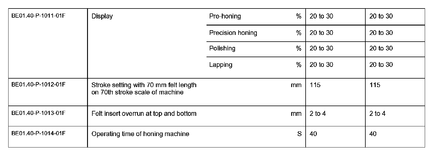 BE01.40-P-1000-01F Check values for cylinder boreCheck values for cylinder bore: