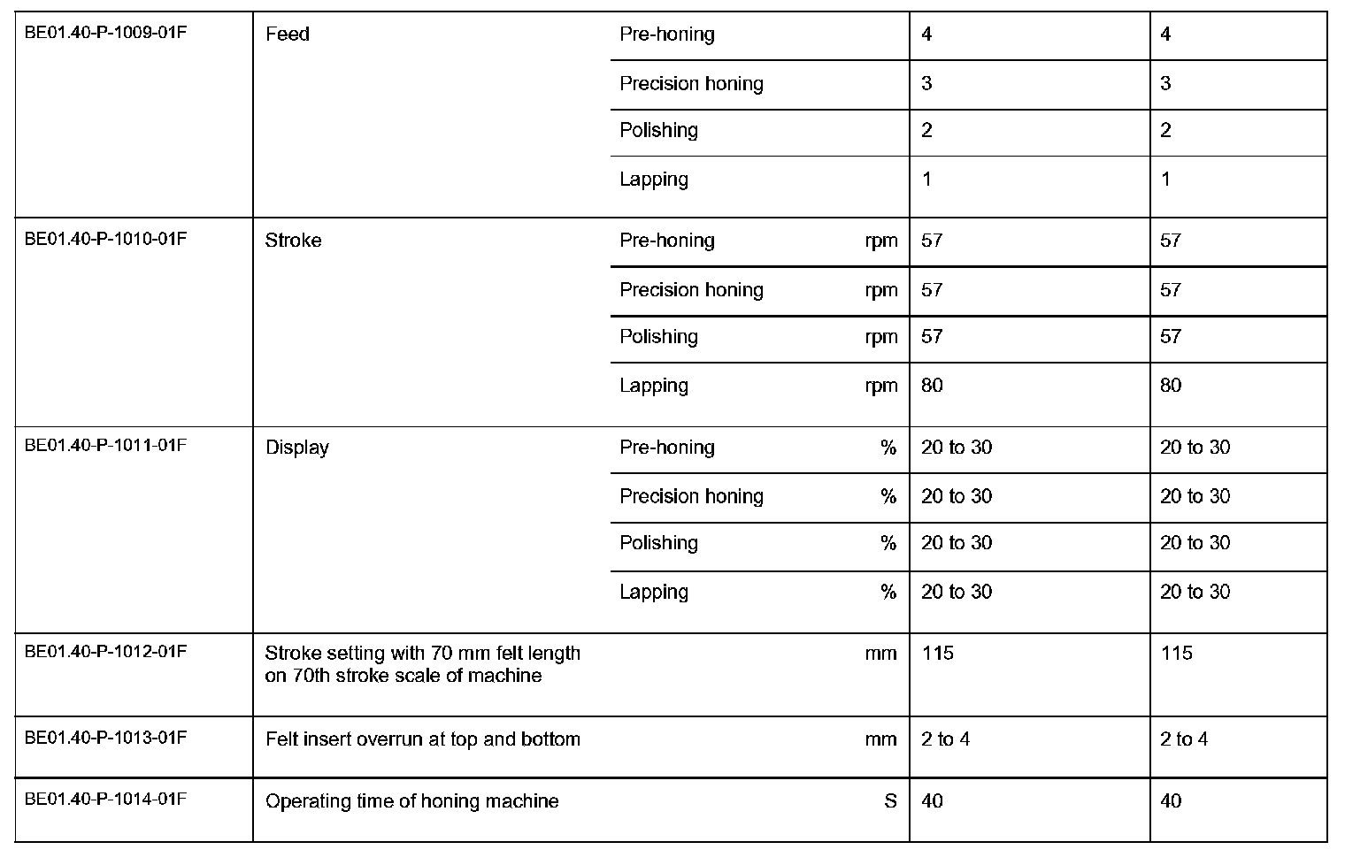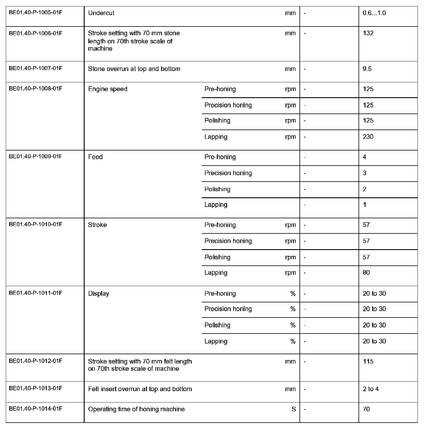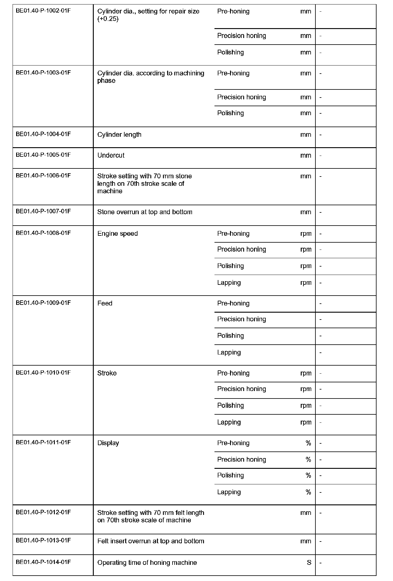BE01.40-P-1000-01F Check values for cylinder boreCheck values for cylinder bore: