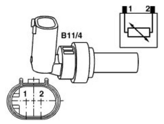 Detects the coolant temperature and sends a signal to the engine control unit