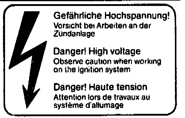 The engine is equipped with an electronic ignition system. Because of the high ignition voltage, it is extremely dangerous to touch any of the ignition components (ignition coil, distributor, ignition cables, spark plug connectors, test socket) when: