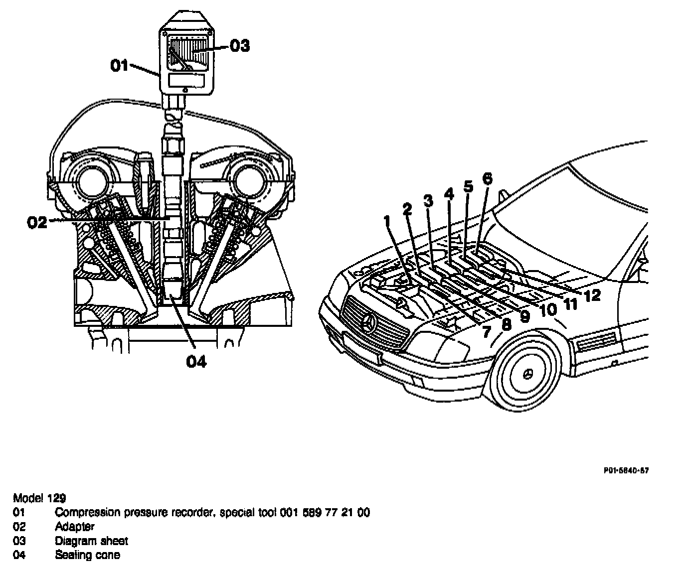 Model 129: Test cylinder 12 with 90° adapter (05) because of fuel lines.