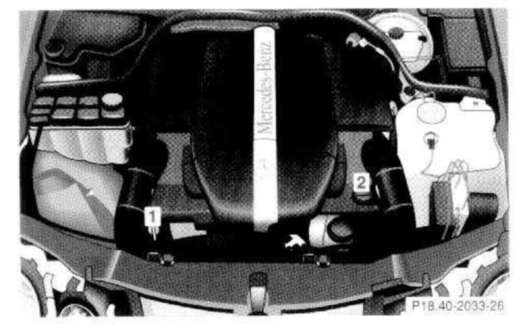 Do not overfill the engine. Excessive oil must be drained or siphoned. It could cause damage to engine and catalytic converter not covered by the Mercedes-Benz Limited Warranty.