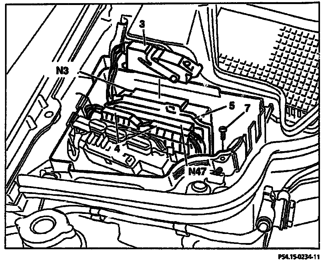 NOTE: The CFI control module (N3) and traction system control module (N47) are mounted on one bracket (5) and must always be removed together.