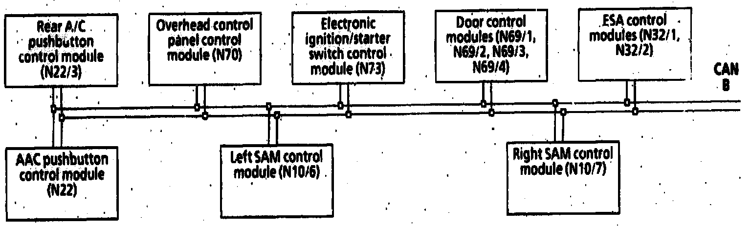 All control modules with a control function for the automatic air conditioning are connected with one another by the passenger compartment bus (CAN class B). The CAN data bus is a bidirectional bus, i.e, each control module connected is capable of transmitting and receiving information.