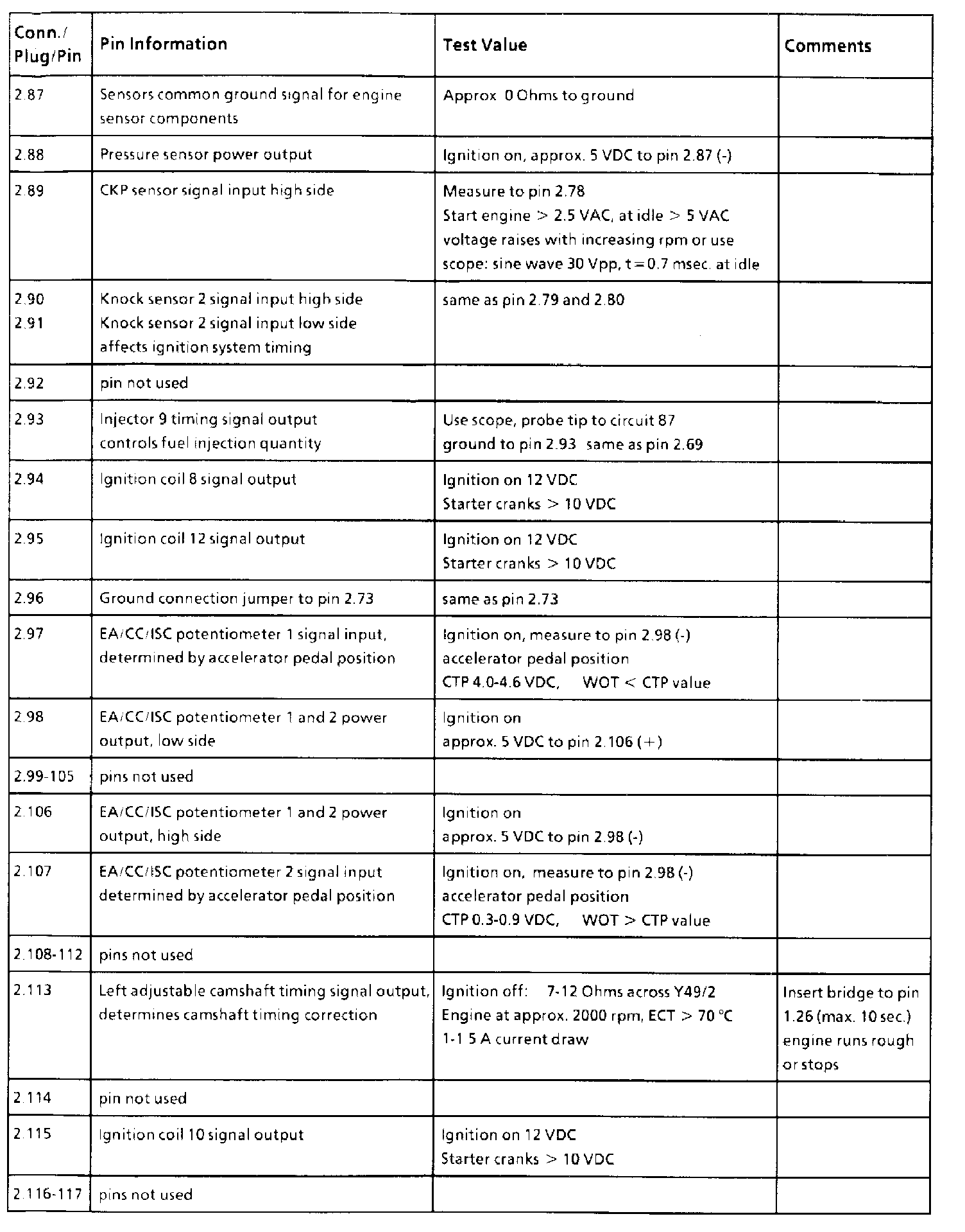 All values measure to ground unless otherwise noted