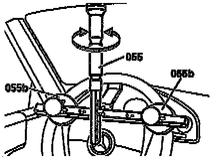 1. Fix steering wheel in center position using locking device (055) tool No. 129 589 01 21 00, or equivalent.