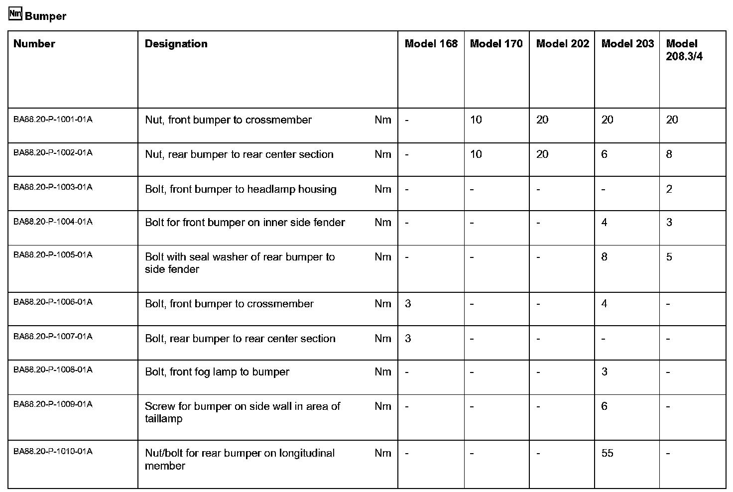 Bumper: Specifications