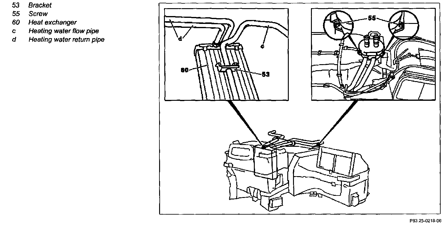 9 Detach heating water pipes (c, d) on heat exchanger, remove screws (57)