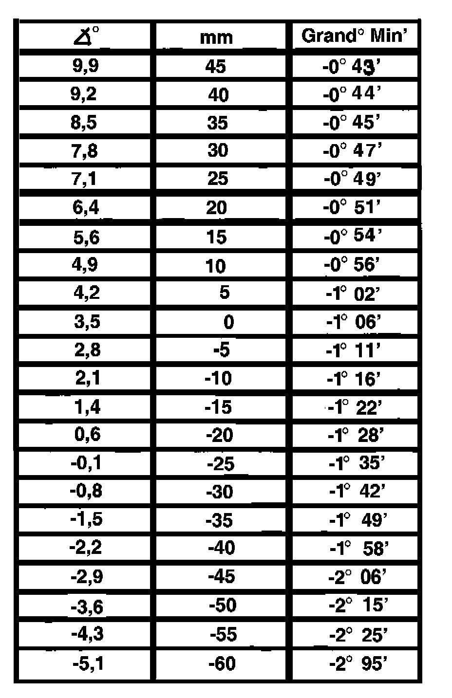 -10 mm -1.5° -1°45' ±30'