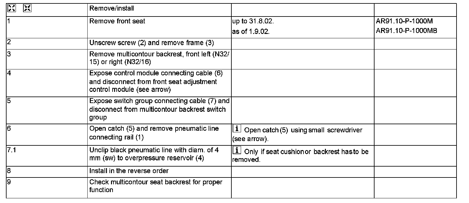 AR91.25-P-1750M Remove/Install Front Seat Multicontour Backrest Control Module