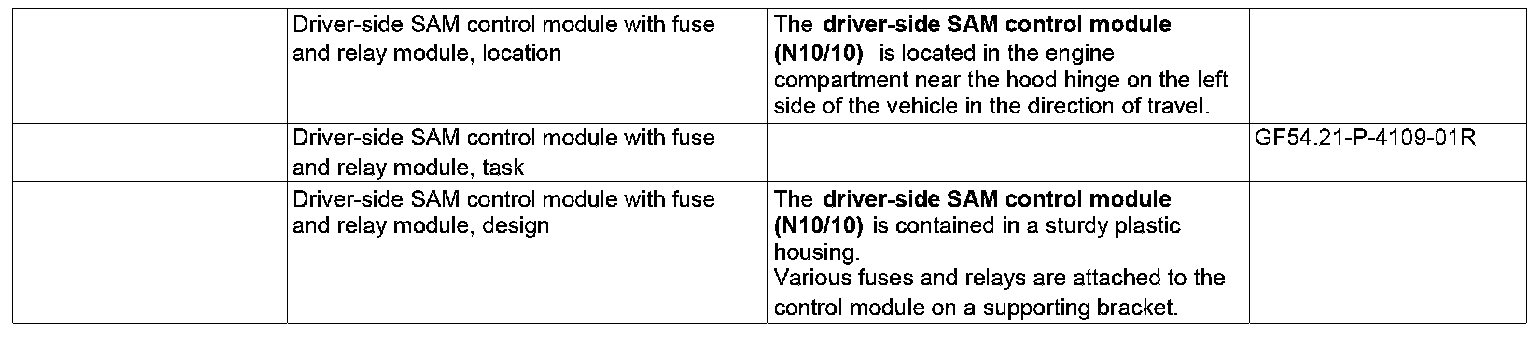GF54.21-P-4109R Driver-side SAM Control Module With Fuse And Relay Module, Location/task/ Design
