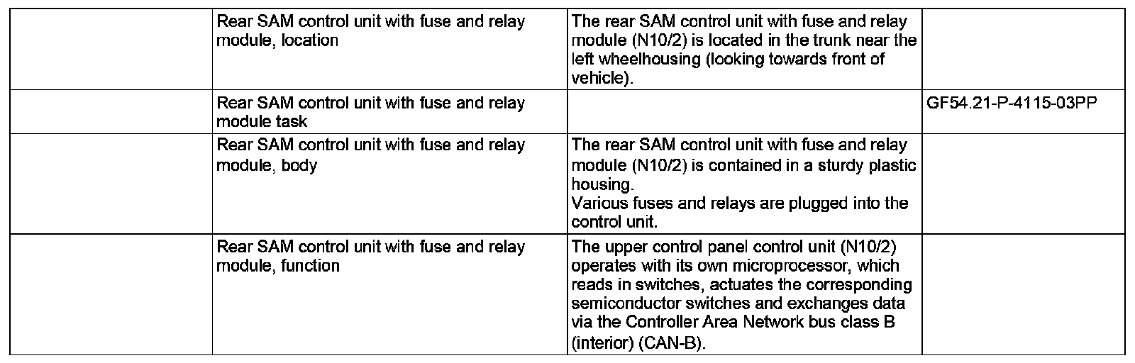 GF54.21-P-4115PP Rear SAM Control Unit With Fuse And Relay Module, Location / Task / Design / Function