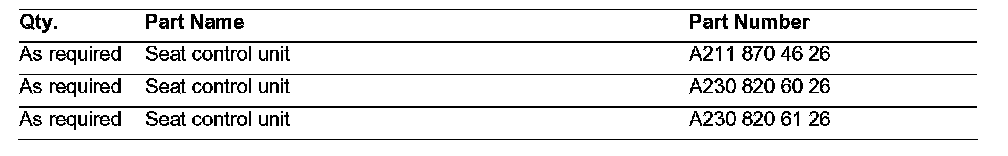 If you receive customer reports in the above model vehicles regarding the easy entry/exit feature for the seat position not functioning, this may be due to prior replacement of the instrument cluster (A1) on vehicles up to Model Year 2004. This can be corrected by installing one of the following seat ECU (N32/1 or N32/2) part numbers and programming the ECU with SDS release 09/06 or newer.