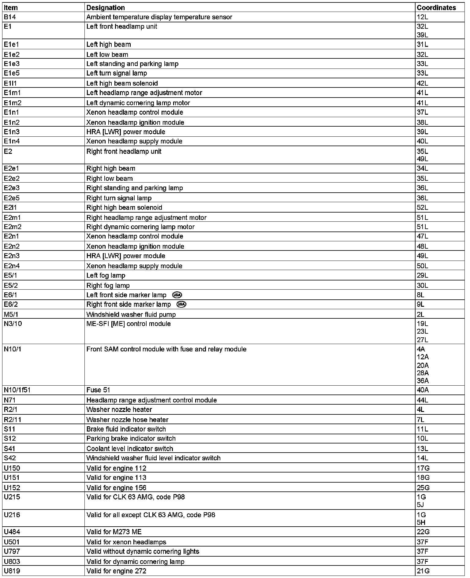Component Description/Coordinates, B14 To U819: