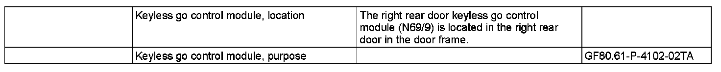 GF80.61-P-4105TA Keyless Go Control Module, Location/Purpose