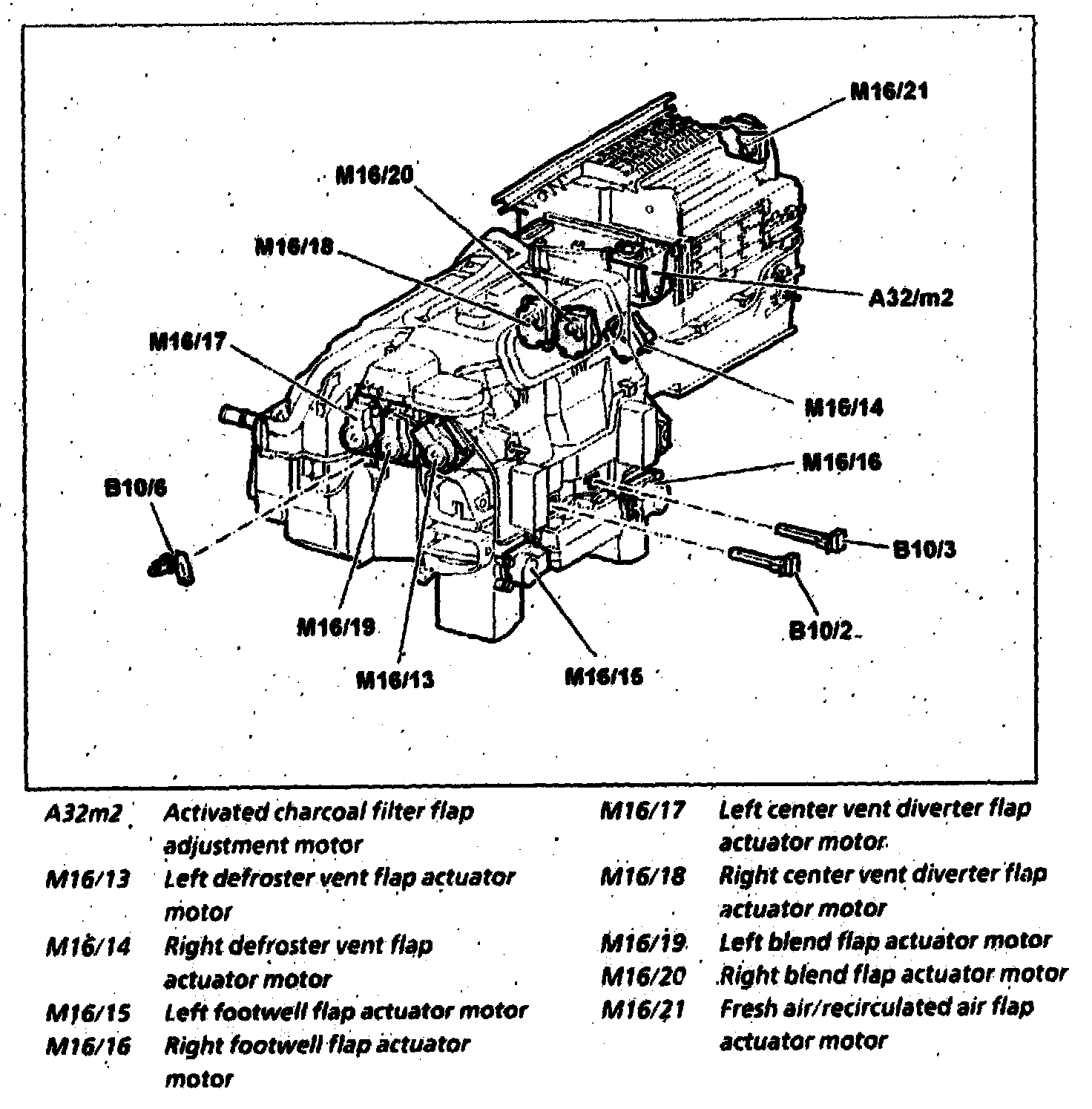 The stepper motor electronics control module controls the following 10 stepper motors on air conditioning box: