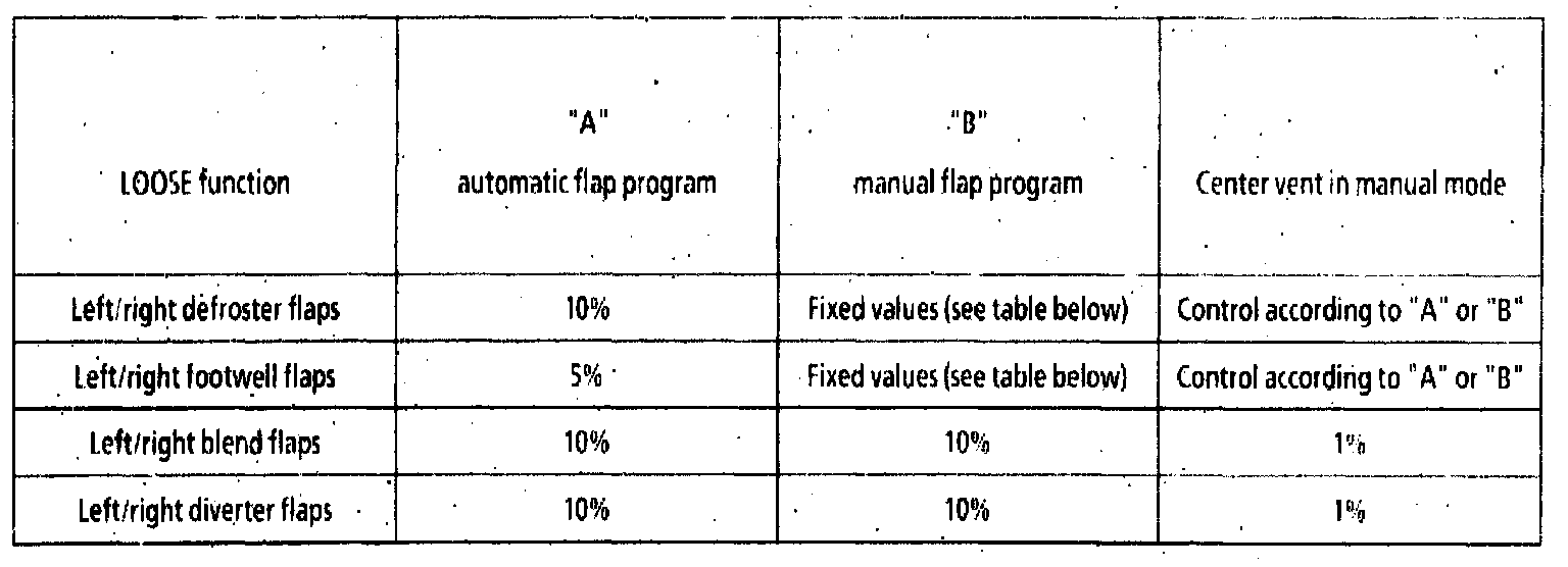 LOOSE function: Once a position is reached, it is necessary for the air outlet temperature at the center vent to change to such an extent that the next higher or lower LOOSE value is exceeded or left below before the position is changed again