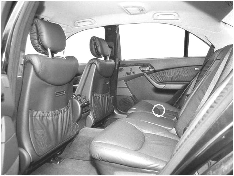interior, under right rear seat (encircled)