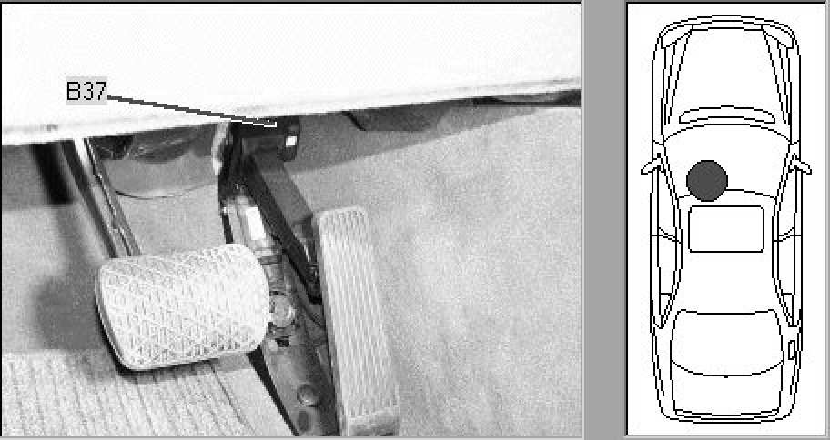 Driver's footwell, on accelerator pedal