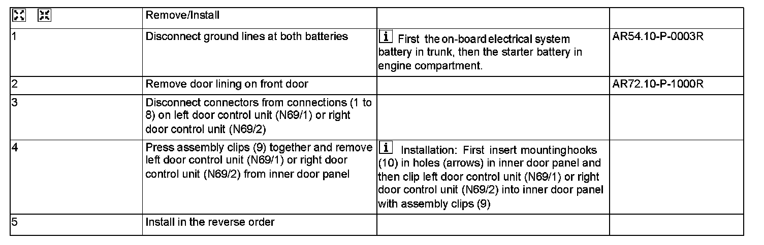 AR72.29-P-1000R Remove/Install Front Door Control Unit