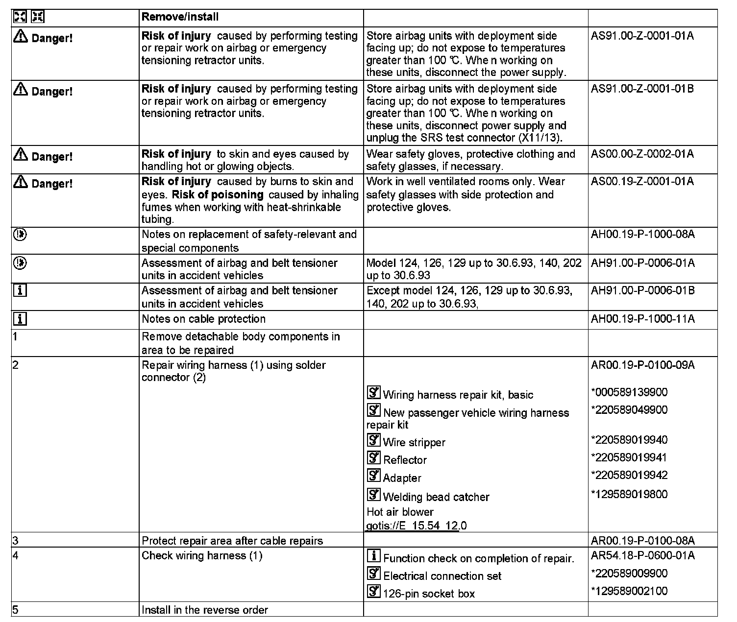 MODEL 124, 129, 140, 163, 164, 166, 168, 169, 170, 171, 172, 197, 202, 203, 204, 207, 208, 209, 210, 211, 212, 215, 216, 218, 219, 220, 221, 230, 231, 240, 245, 246, 251, 414, 461 as of 1.4.94, 463