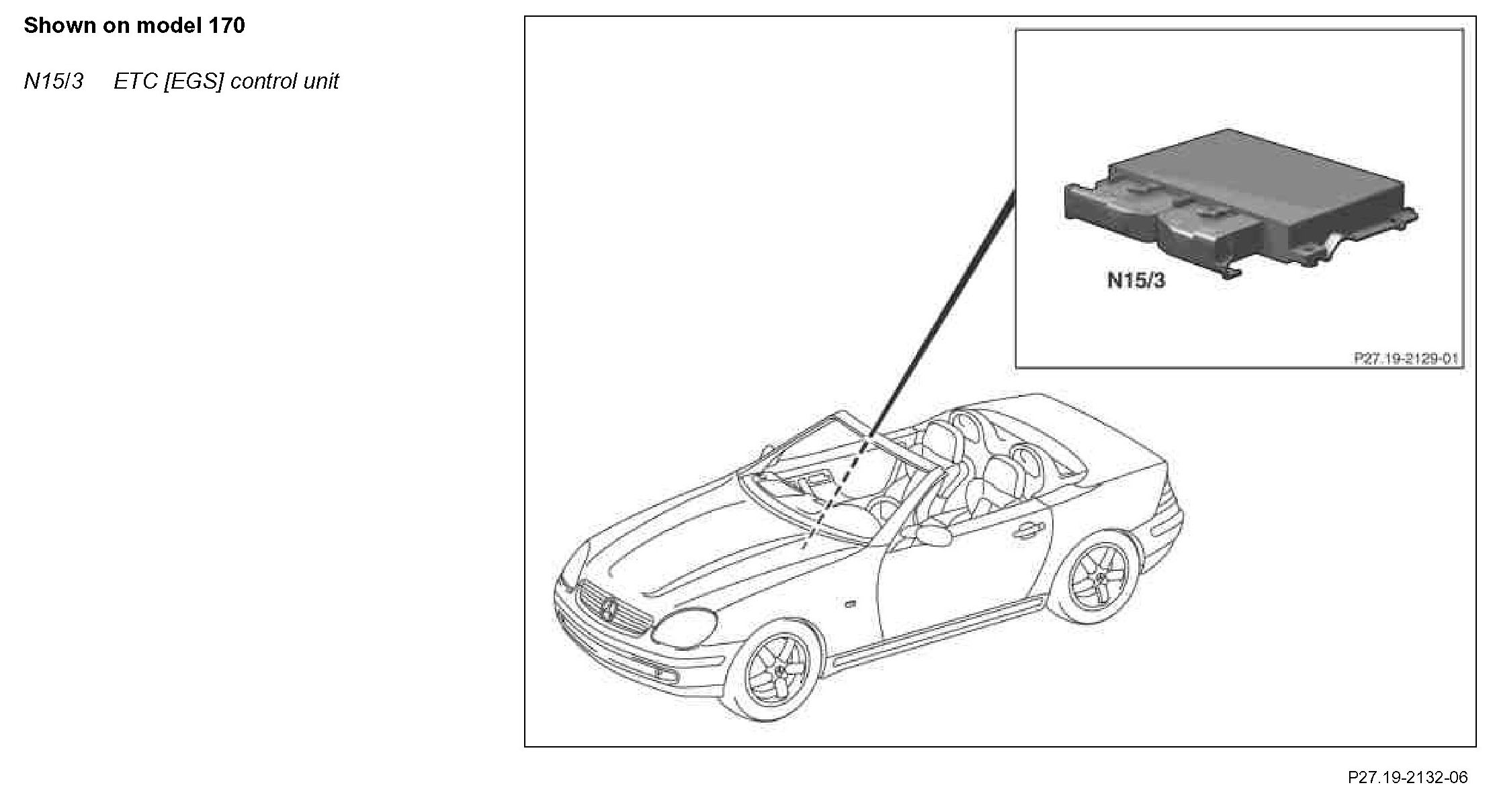 The ETC control unit (N15/3) is installed under the tread plate in the front passenger footwell.