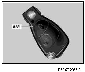 Shown on model 203.2/7 with code (763) Radio remote control with panic switch