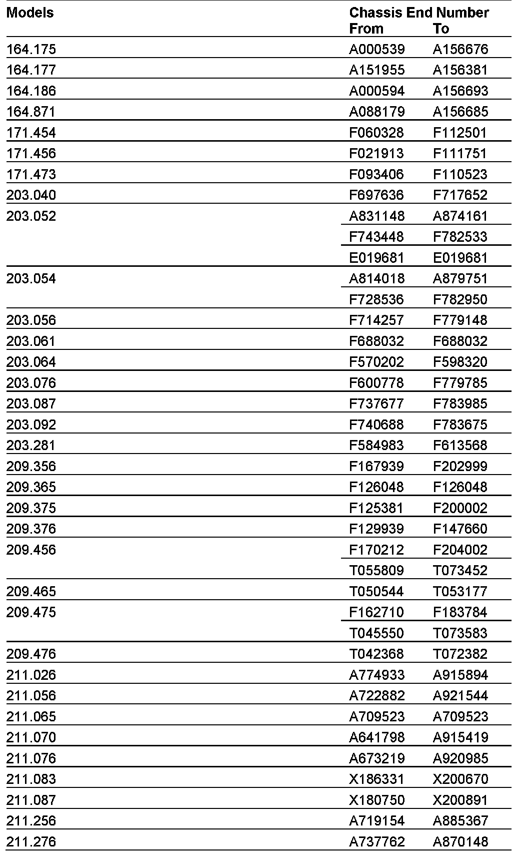 MODELS 164, 171, 203, 209, 211, 215, 219, 220, 221, 230, 251, X164