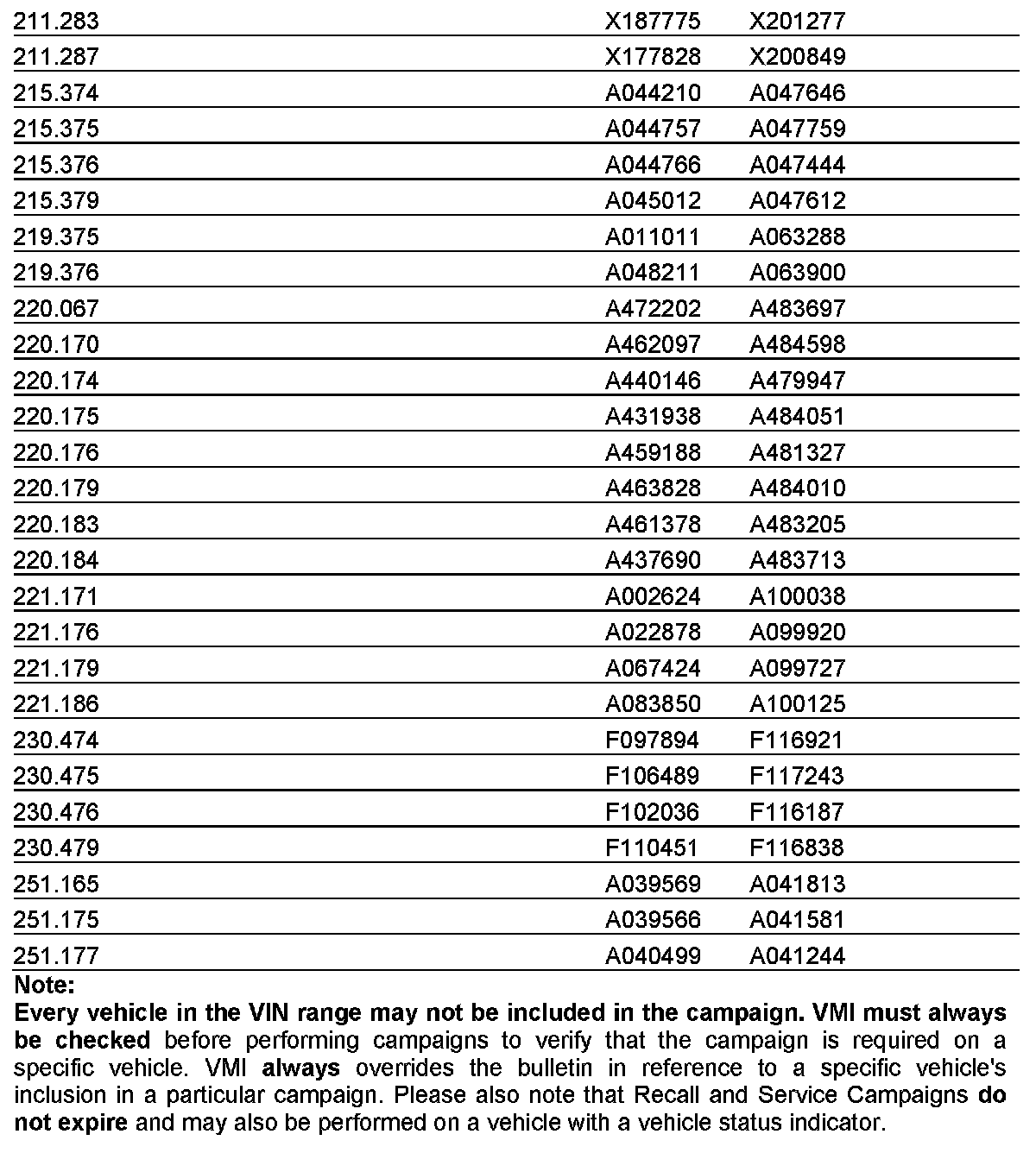This Service Campaign has been initiated because DCAG has determined that certain affected vehicles (see VIN range shown above) may have an earlier version navigation disc installed than that specified. This could in some cases lead to navigation directions based upon non updated map data. Dealers will update the navigation disc in the affected vehicles as required.