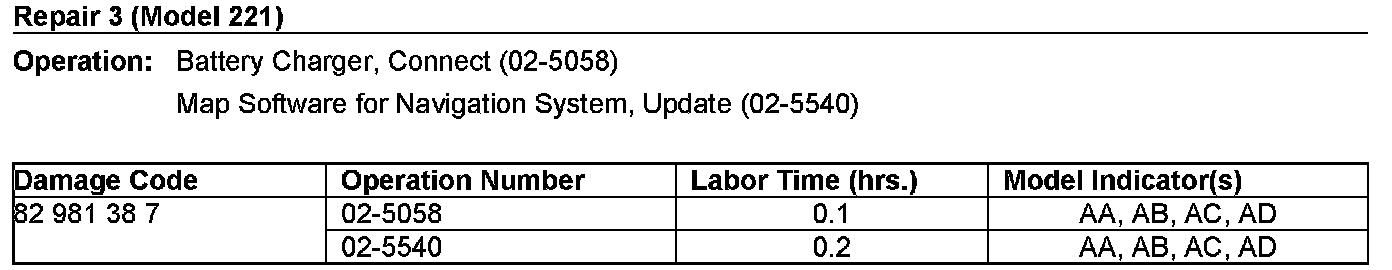 ^ The following allowable labor operation should be used when submitting a warranty claim for this repair: