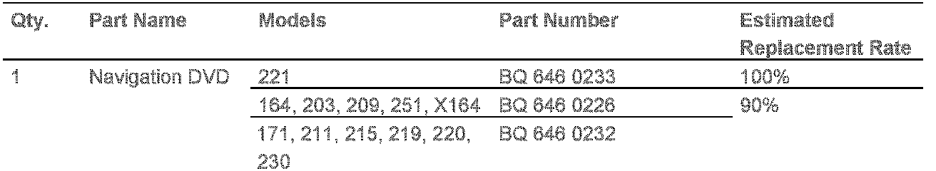 ^ Due to the multiple Navigation DVD released annually, there may be a newer Navi DVD version than the one referenced in this Campaign Bulletin. Please use the latest Navigation DVD available from Navteq. MUBSA will update this bulletin to reflect latest Navi DVD part numbers as they become available.