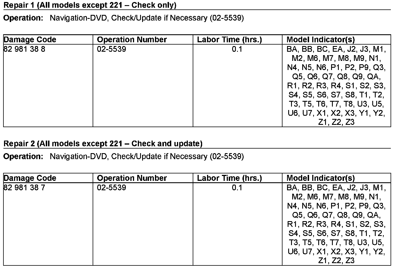 This Service Campaign has been initiated because DCAG has determined that certain affected vehicles (see VIN range shown above) may have an earlier version navigation disc installed than that specified. This could in some cases lead to navigation directions based upon non updated map data. Dealers will update the navigation disc in the affected vehicles as required.