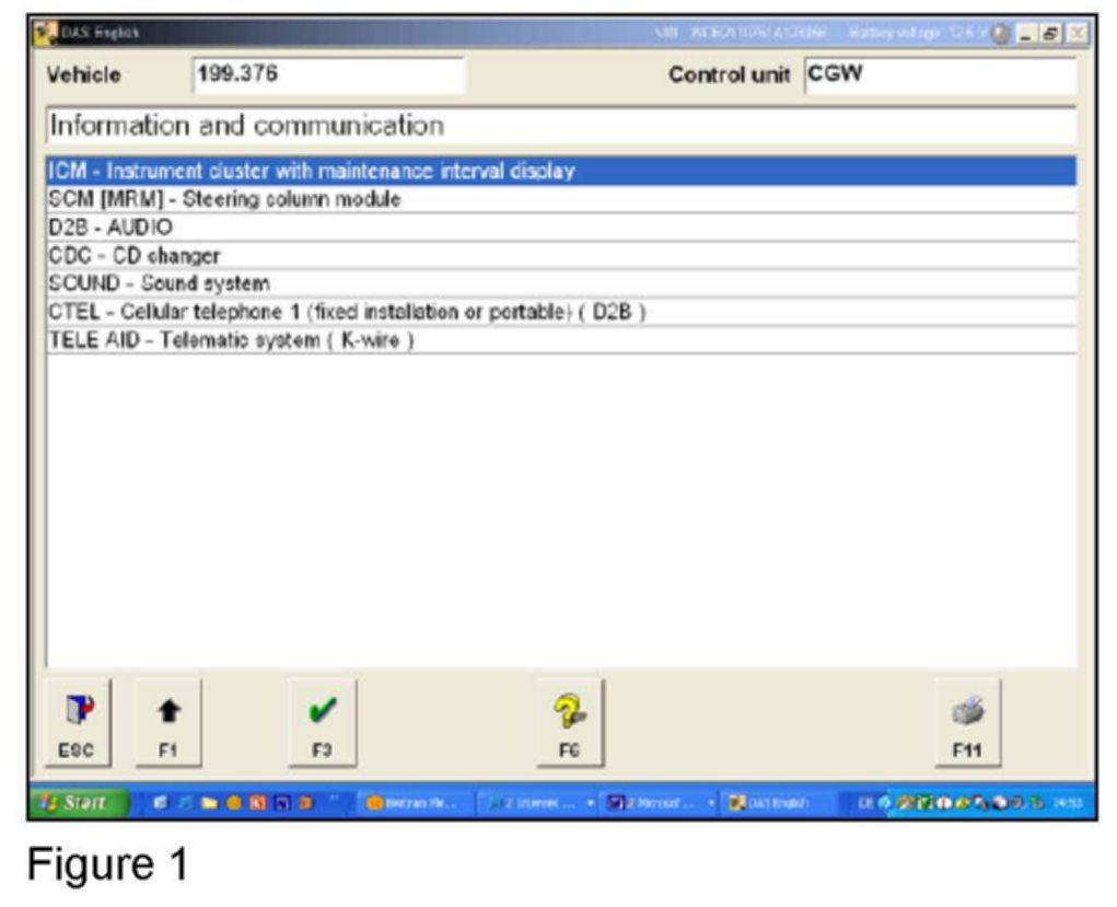 1. Enter the Instrumental Cluster (KIVV) with DAS (Figure 1).