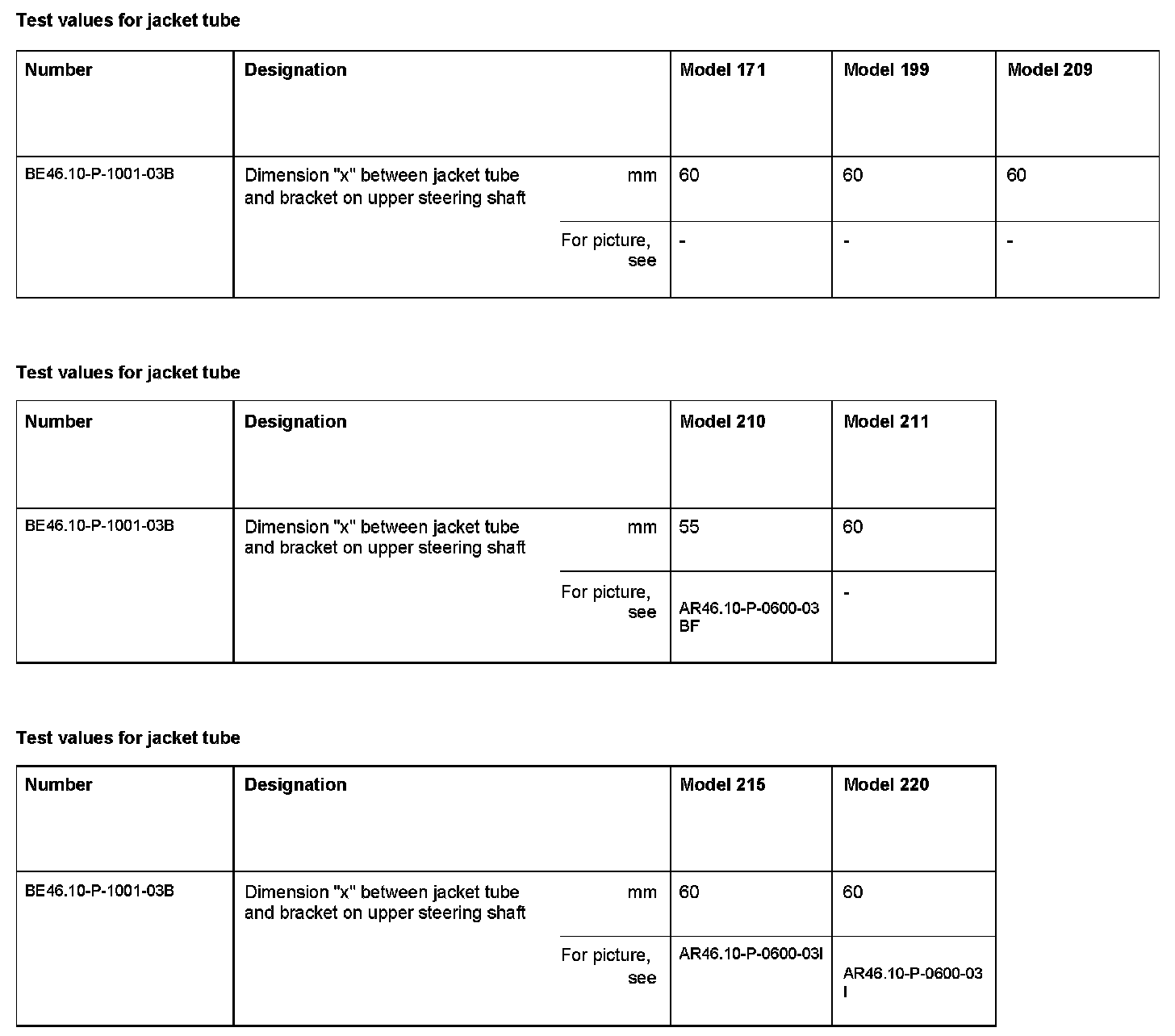 BE46.10-P-1000-03B Test values for jacket tube