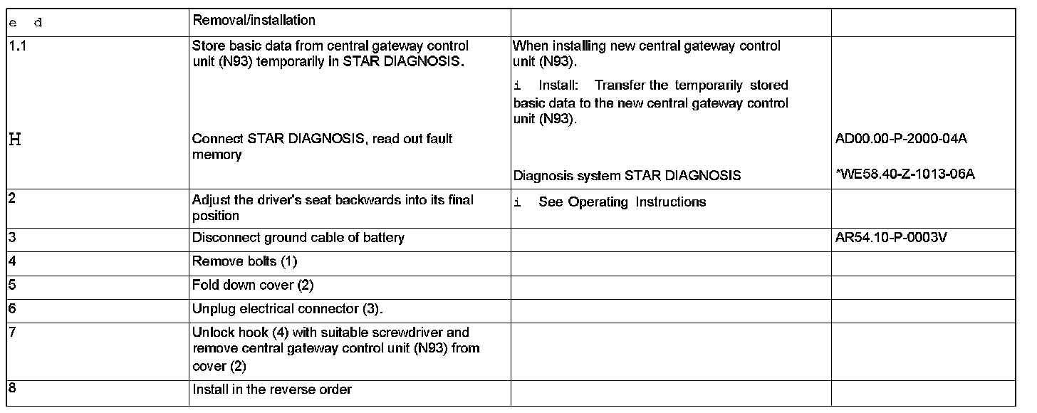AR54.21-P-0817V Removing and Installing Central Gateway (CGW) Control Unit