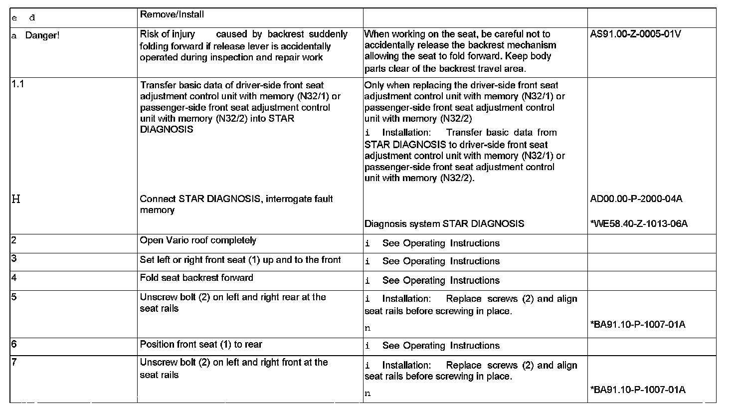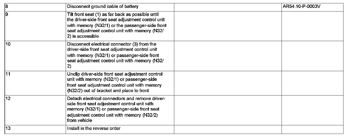 AR91.29-P-0008V Remove/install Seat Adjustment Control Unit