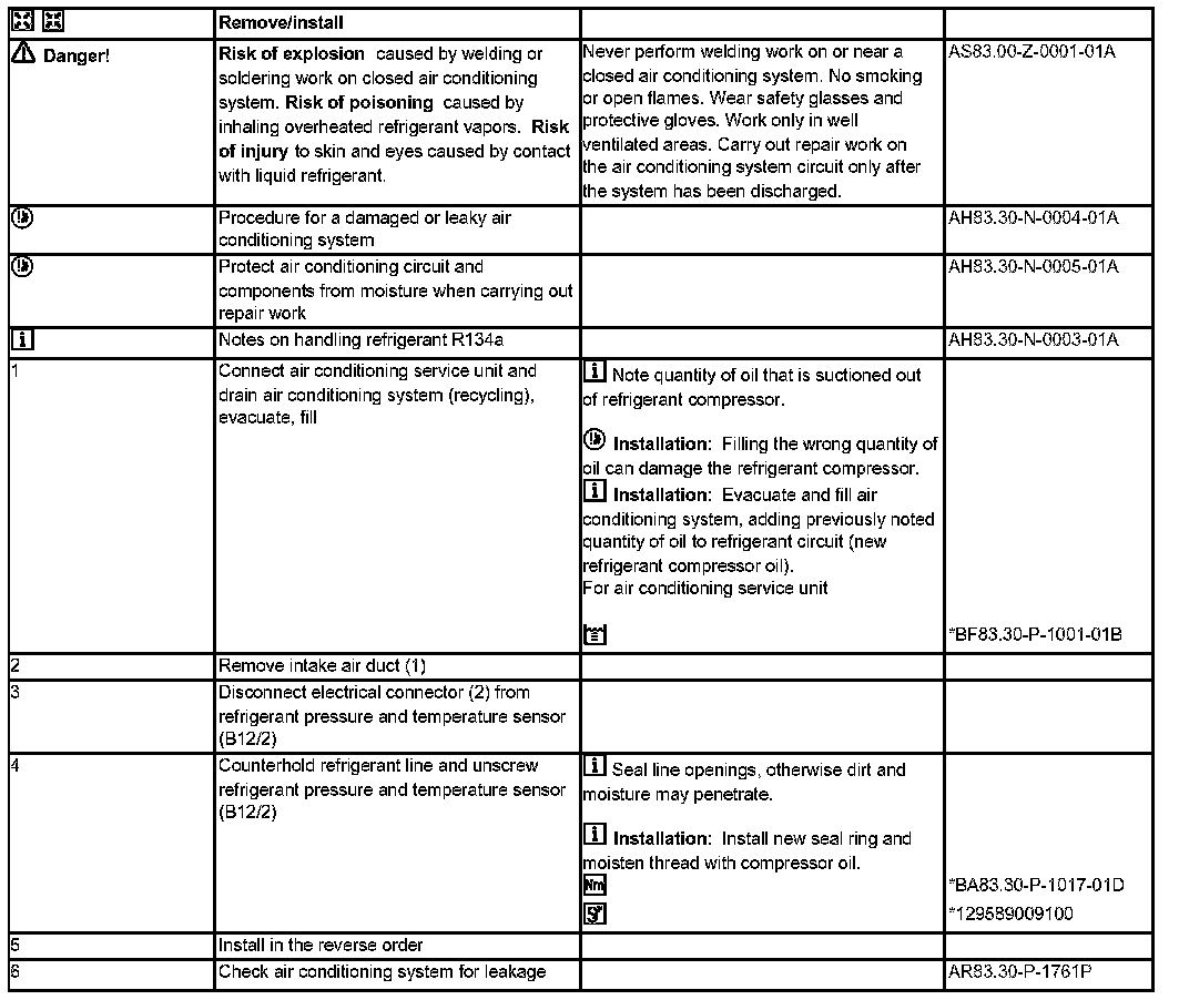 AR83.30-P-5431Q Remove And Install Refrigerant Pressure And Temperature Sensor
