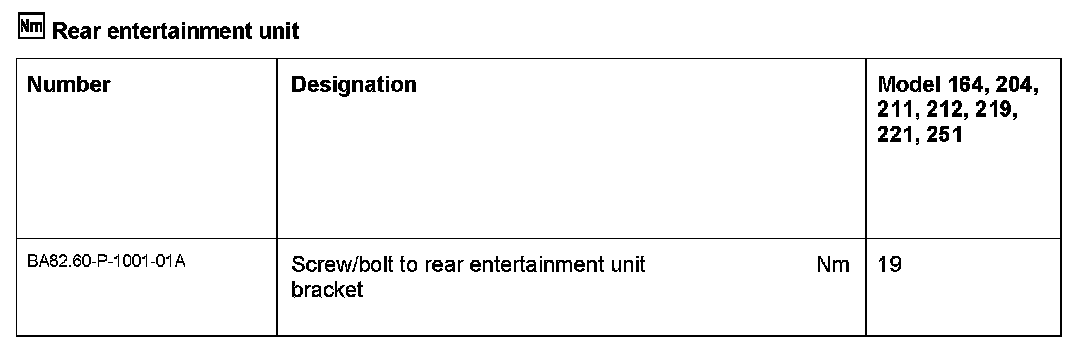 - except CODE (864) Rear entertainment system